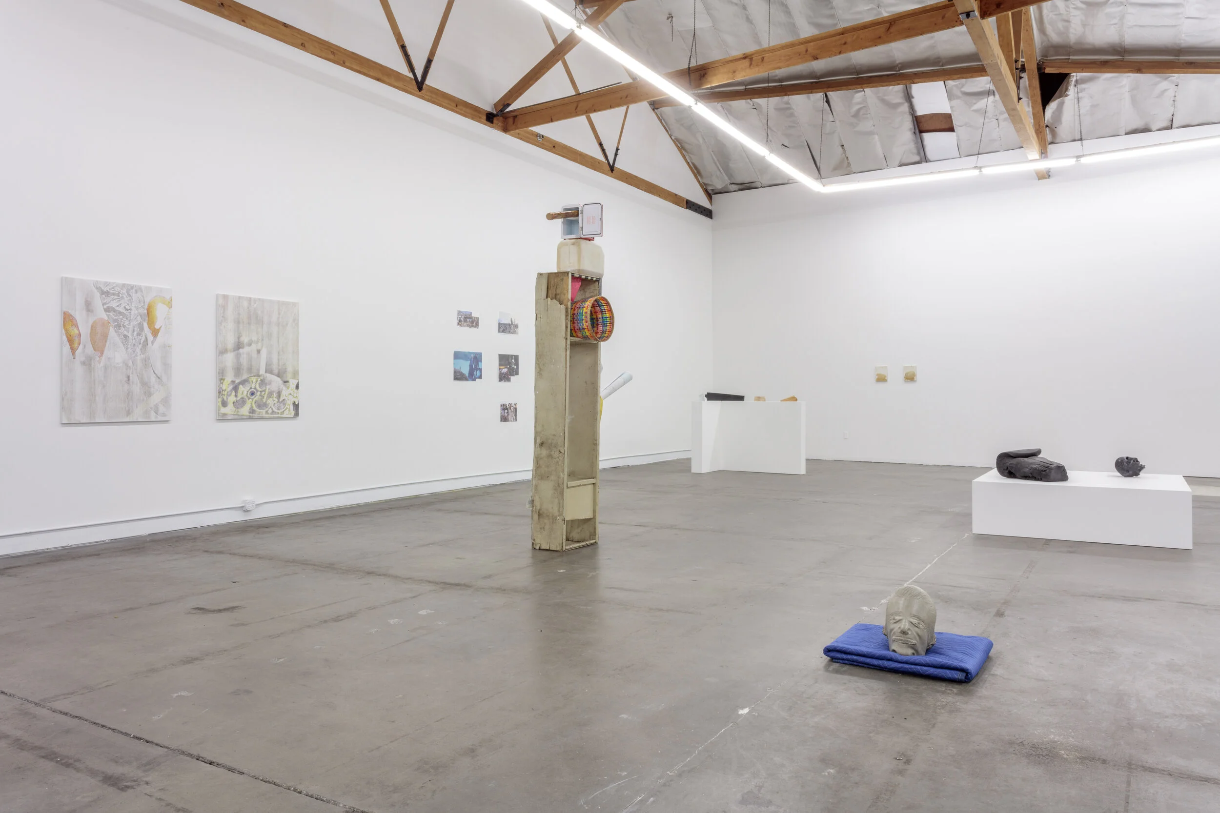 In addition, contradictory images, removed from their contexts, are combined to scramble our readings. While Wolfgang Tillmans takes aim at image production (while wandering in digital printing and food processing fairs), Thomas Hirschhorn eliminates the hierarchy between fashion and war photography, Haegue Yang celebrates hybridity with a figurative hay vase associating traditional craft and modernity. Furthermore, Roberto Cuoghi's eroded gondola pole becomes a demonic monument for the Mesopotamian god Pazuzu. Abraham Cruzvillegas's recent self-portrait ironically delineates the complexity of his own persona and equilibrium. Oscar Tuazon and writer Ariana Reines collaborated on a Greek-inspired erected herm, conjugating their differences and affinities.